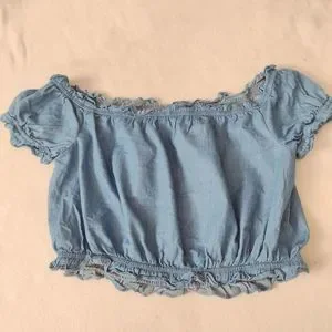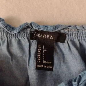 SALE Forever 21 Embroidered Crop Peasant Top L Off Shoulder Chambray