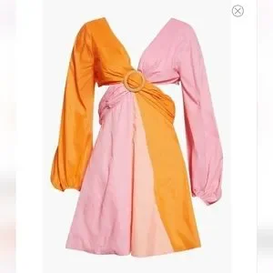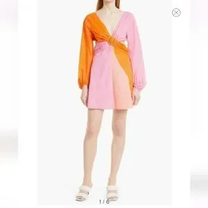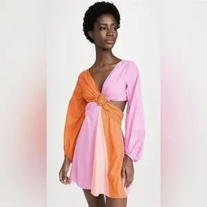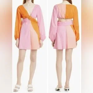 STAUD Gulf A-Line Cutout Dress in TANGERINE/ GRAPEFRUIT/ PETAL Size 4