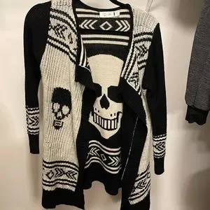 Awesome and really great quality brand skull cardigan. There are some pulls which are all pictured. Otherwise no other issues. Preloved in nonsmoking home