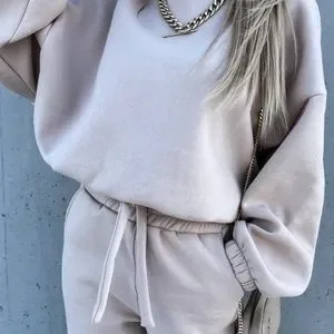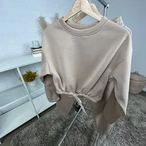Stay cosy and stylish on the go with our Cropped Pullover Sweatpants SET. This must-have set features a cropped pullover with a waist tie and matching sweatpants, offering both comfort and style. Made with great quality, it's perfect for everyday wear.