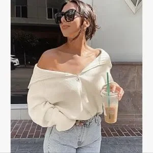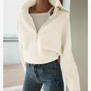 Brand new with tag! Super soft and cozy material. Stylish half zip pullover sweater in ivory white color. Size S. Purchased from Amazon for $42. Bundle with my other listings for discount!
