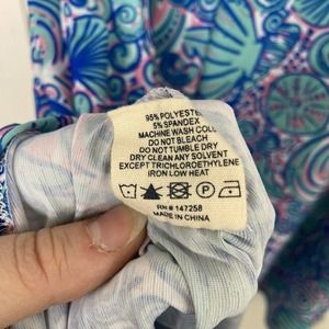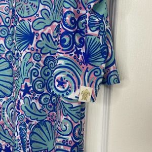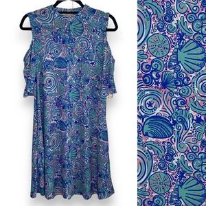 Simply Southern Seashell Print Cold Shoulder Dress Size Medium Blue Pink Stretch