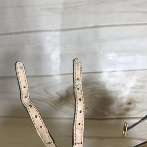 Beautiful shoe for any occasion. Leather uppers, ankle straps and 4” heel. Please see pics for signs of wear on straps. The brown spots are flashes not damage to the shoe. Excellent condition!