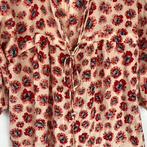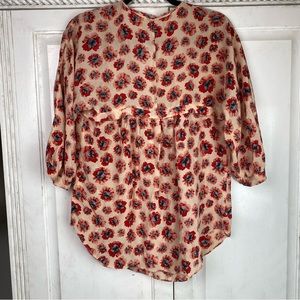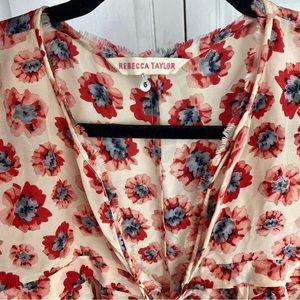 Rebecca Taylor Boho 100% Silk Floral Pink Red Oversized Flowy Tunic Blouse 6