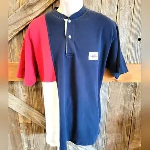 VINTAGE Nautica Polo Shirt Mens M medium Color block Sailing Rugby Cotton