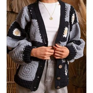POL Lyla Daisy Patch Crochet Cardi in Black/Grey Multi SMST461