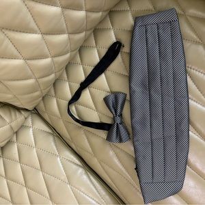 Black & Silver Men's Cummerbund & Bow Tie Set- adjustable- great condition- used just once on a cruise.