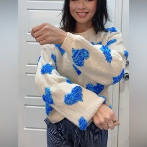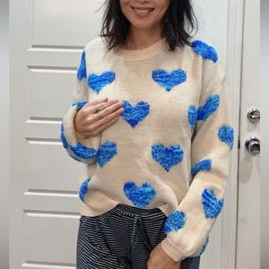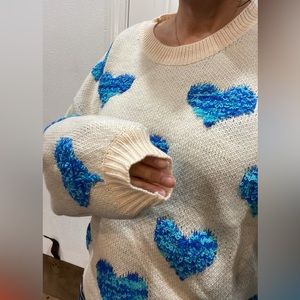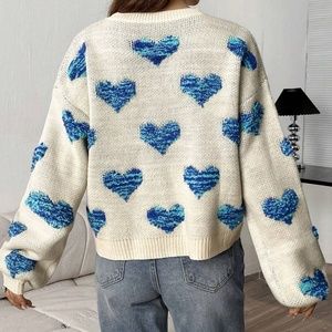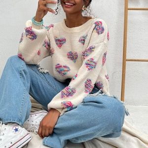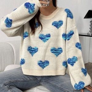 06 Cozy Hearts Print Oversized Knit Sweater Top