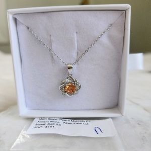 NWT Ryze Peach Moscato & White Cubic Zirconia .925 Sterling Silver Necklace