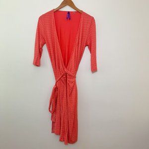 Seraphine Maternity Nursing Knit Wrap Tie Dress Geometric Coral Print, Size 8