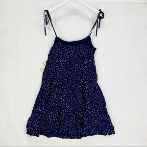 Altar'd State Navy Blue White Polka Dot Diedra Tiered Tie-Shoulder Mini Dress M