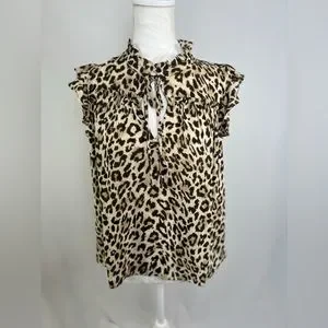 NEW / J.Crew Ruffle tie-neck top in leopard print