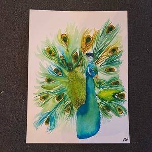 This original peacock painting was painted on 140lb watercolor paper, the paper is 9x12