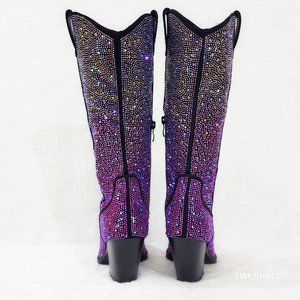 Western Glow Multi Purple Ombre Rhinestone Disco Cowgirl Knee Boots
