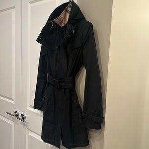 Burberry Brit Trench coat black removable hood check lining EXCELLENT condition