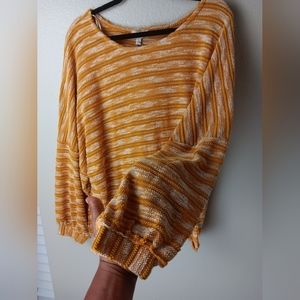 Umgee Mustard Yellow and White Stripped Oversized Crewneck Sweater.