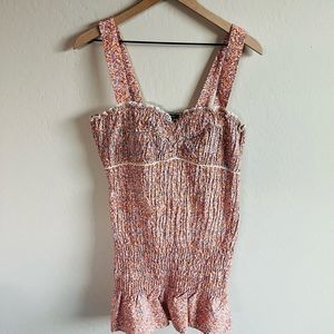Zara Women’s Orange Floral Ruffle Smocked Mini Bodycon Boho Dress NWOT Size L
