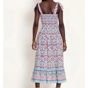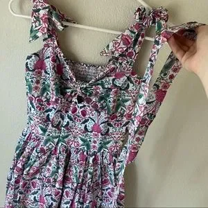 Tie front with smocked back for stretch.