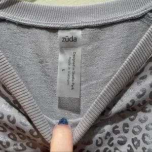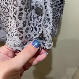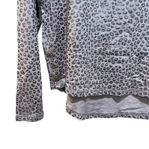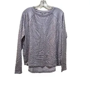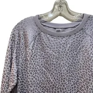 Zuda Leopard Print Metallic Long Sleeve Sweatshirt Top Silver Size Large