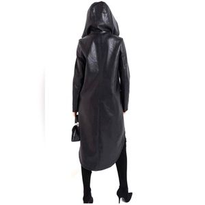 Women's XL Trench Vegan Leather Black Coat