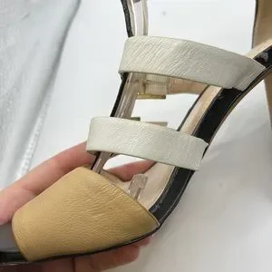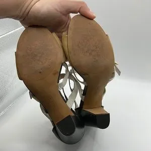 Vince Camuto Adriana Heels Gladiator Sandals Leather White Black Tan Womens 8 M