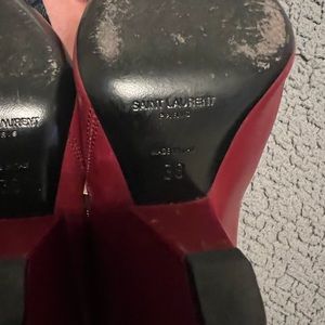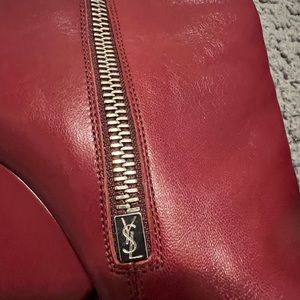 Authentic YSL red booties. Deep red. In great condition, has minor scuffs on the point & on one of the heels. Not that noticeable. Has logo on the zipper. Dust bag is included. Lmk if you have any questions!
