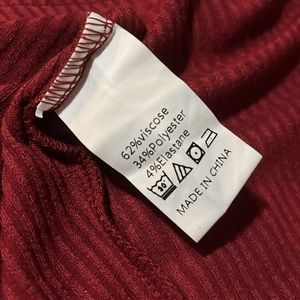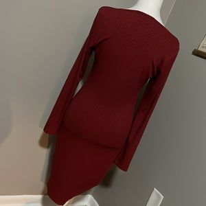 Pretty Garden Merlot Burgundy Ribbed Asymmetrical Midi Long Sleeve Dress