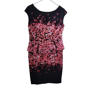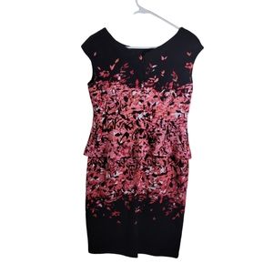 Gently used St. John Black Flamingo Knit Peplum Sweater Dress Wool Blend Metallic