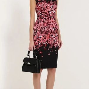 St. John Black Flamingo Knit Peplum Sweater Dress Wool Blend Metallic