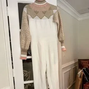 Keep warm all winter in our Lali Onesie. With a festive lurex knit fabric, this designed-by-hand ultra-soft piece features a custom layout with classic LoveShackFancy motifs like hearts and ribbons amongst a stripe & jacquard technique. A spirited shimmer all over, the onesie has a center-front zipper finished with a pom pom detail for a whimsical touch.