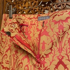 Groovy pink & tan pants from Sigrid Olsen in a tapestry print. Full of sass and spunk!