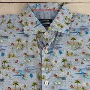 Bugatchi classic fit shirt, Kapalua short sleeves button, surfer design, med (?)