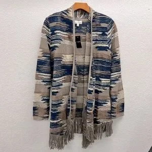 Lucky Brand Southwest Style Open Front Cardigan with Fringe bottom S