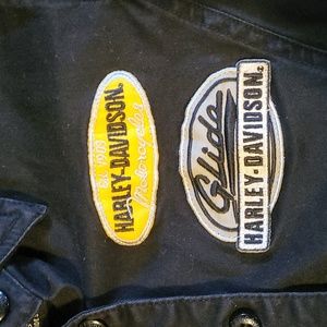 Harley Davidson women's garage shirt.. size xs..98% cotton 2% spandex..cap sleeve..button front..excellent condition