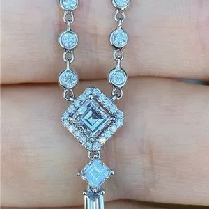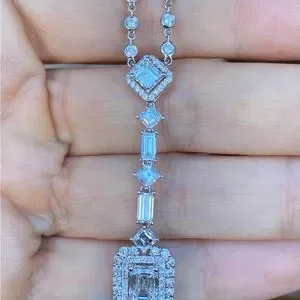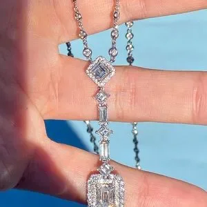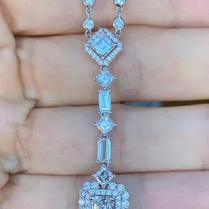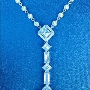 Brand new 18k white gold, 13 gram 18” 5.57 carat V2-SI1 diamond necklace by Odelia. 1.75” drop. 1.06ct emerald cut center stone VS2/very good/very good/no fluorescence. Gorgeous.retail $18,500+tax.