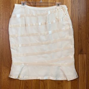 CHIC WHITE IVORY LINEN AND SILK SKIRT SUIT FLARE CUFF