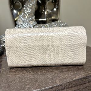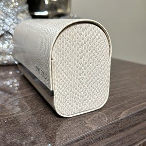Jimmy Choo snakeskin glasses case. Soft gold logo and magnetic closure. Cotton lining. Excellent new condition, no flaws