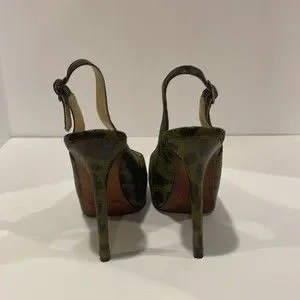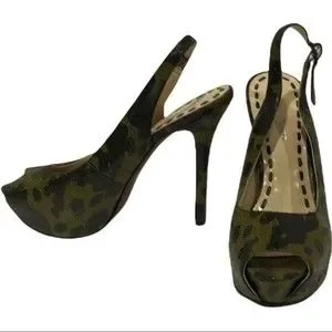 Enzo Angiolini Green and Black Leopard Print Platform Slingback Heels. Size 7.5. Heel is 5.5 Inches. Gently Used Condition.