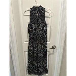Get fashionable faster in this one-and-done jumpsuit styled in a captivating print and cut with a flattering neckline in a sleeveless silhouette. Back keyhole with button-and-loop closure Stand collar with cutout neck Sleeveless Lined 100% polyester Dry clean Imported Individualist