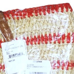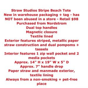 Straw Studios Stripe Pool Tote Beach Bag Colorful PomPoms Tassels Colorful NWT