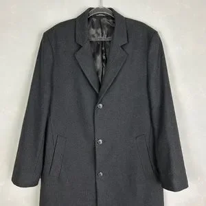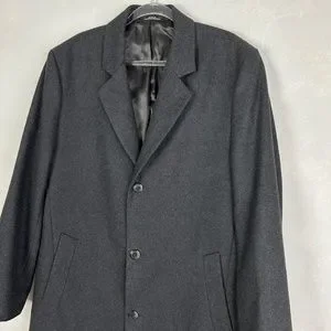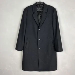 London Fog men's size 42L wool blend long coat dark gray lined