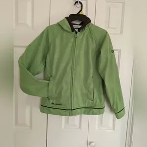 Columbia soft shell hoodie jacket, lined in fleece, lime green S.