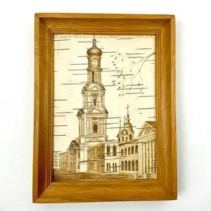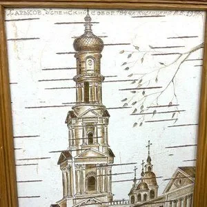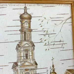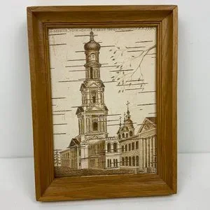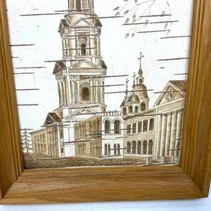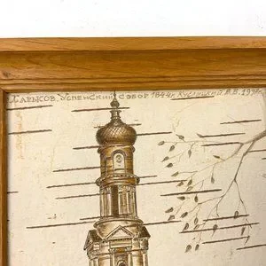 Framed Painting On Birch Bark. Signed and dated 1997. Measurements: 5" wide, 8" high. Please review all pictures carefully as they are part of the description.