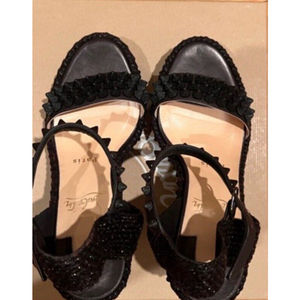 Christian Louboutin $745 Lata 110 Calf Black Spiked Wedges Red Bottoms Size 36