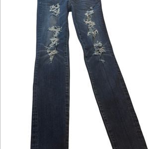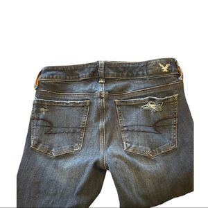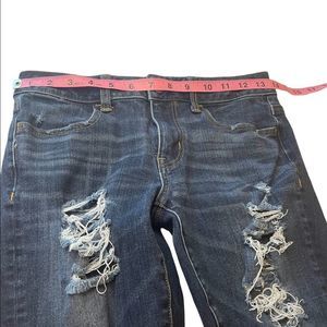 American Eagle 360 Degree Super Stretch Dark Wash Destroyed Jeggings. Size 4. Excellent Used Condition. Measurements shown in the pictures.