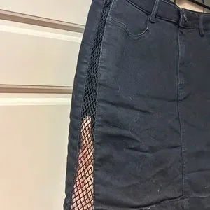 Missguided black denim and mesh mini skirt Worn once 16” top to bottom Size 6
