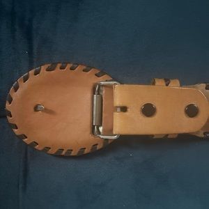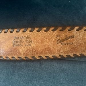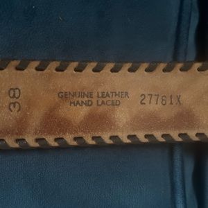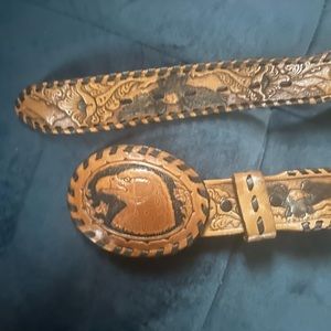 Beautiful hand tooled hand laced leather belt featuring eagles in flight mountains , sunrise and flowers