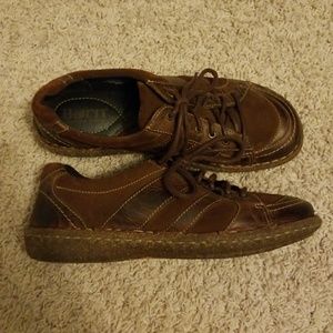 Dark brown, practically new born lace up women's shoes. Size on the inside indicates 8.5 but they fit me perfectly at 7.5. Worn only a few times. No signs of wear.