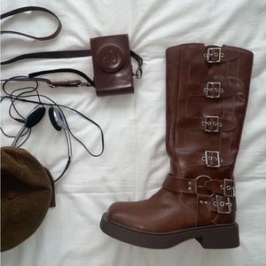 BROWN BROWN MOTO COMBAT BIKER BUCKLE BOOTIES
