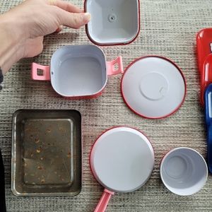 Good / Fair preowned condition. Items are well used see all photos for wear, stains, marks and rust. The bento type lunchbox is broken, the lid does not stay on well.
